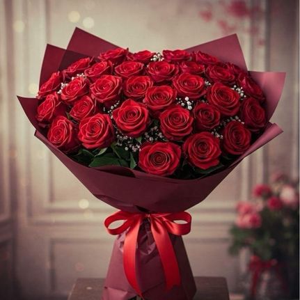 Arranged with 25 Red Roses and Baby Breath Leaves Elegantly Wrapped